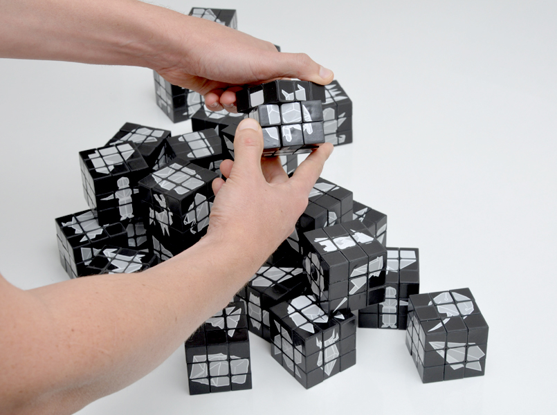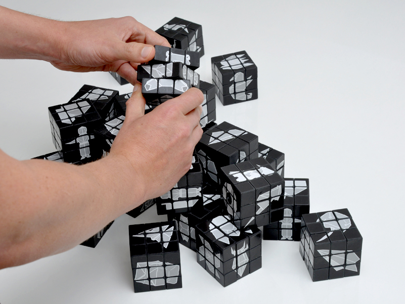 Instalação/objetos , 27 cubos mágicos de plástico e adesivos. Dimensões: variáveis. Fotos: Tadeu Lopara.