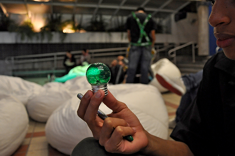 Intervenção com canetas pilotos em lâmpadas rosqueadas